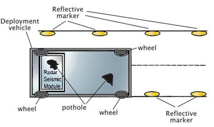 The deployment vehicle is guided by a positioning device, to place the machine above every position of the road surface that needs to be repaired. The machine uses data from seismic or radar analysis carried out in a survey phase for repairing the road surface with the use of modules within the machine. The deployment vehicle is capable of moving and positioning itself, without the need for external power. The machine not only positions itself, but also analytically adjusts the positioning of each of the separate robotic modules over the areas to be repaired. Thus, the technology can perform more than one function at a time, possibly three or more functions at once. An advanced computer governs operation. The deployment vehicle has hoppers, in which the asphalt/cement is loaded as required. The machine uses advanced radar, seismic technology modules to analyze the road surface with respect to the defects in need of repair.