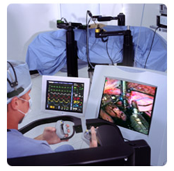 The ZEUS® Surgical System is made up of an ergonomic surgeon control console and three table-mounted robotic arms, which perform surgical tasks and provide visualization during endoscopic surgery. Seated at an ergonomic console with an unobstructed view of the OR, the surgeon controls the right and left arms of ZEUS, which translate to real-time articulation of the surgical instruments. A third arm incorporates the AESOP® Endoscope Positioner technology, which provides the surgeon with magnified, rock-steady visualization of the internal operative field.
