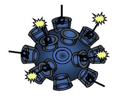 Look close. Those tiny black dots are nanobots delivering a lethal blow to a cancerous cell, effectively killing it.
