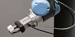 Having a UR5 robot tend four CNC machines milling dental crowns optimizes a substantial part of the production cycle at Glidewell Laboratories in Newport Beach, California.