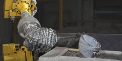 A Robosuit® is a conformal, custom-fitted cover that protects a robot from extreme manufacturing (or operating) conditions. It fits over the robots castings and servo motors without impacting the robots articulation or work-envelope (reach).