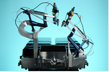 Taking a glimpse into the future, surgery may require only one surgeon, an anesthesiologist and one or two nurses. The doctor sits at a computer console, either in or outside the operating room, using the surgical robot to accomplish what it once took a crowd of people to perform. Robotic surgery has several advantages over conventional surgery, including enhanced precision and reduced trauma to the patient. Traditional heart bypass surgery requires that the patient's chest be "cracked" open by way of a 1-foot long incision. However, with the da Vinci system, it's possible to operate on the heart by making three or four small incisions in the chest, each only about 1 centimeter in length. Because the surgeon would make these smaller incisions, the patient would experience less pain, trauma and bleeding, which means a faster recovery. The robotic arms hold the rods in place. One of the rods has two endoscopic cameras inside it that provide a stereoscopic image, while the other rods have surgical instruments that are able to dissect and suture the tissue.