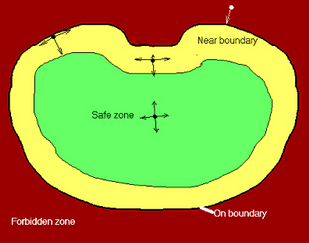 This concept is called active constraint, where the robot controls where the surgeon can cut. The safe zone is where the surgeon has free motion. The close region is near to the soft tissue and the surgeon’s motion is partially constrained. Motion is severely constrained at the boundary region and not allowed in the forbidden region.