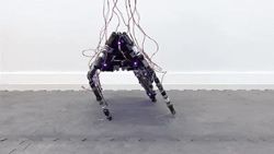 This video shows ten modules connected and starting flat on the ground. The robot stands up and starts walking. All of the modules are identical and functionally independent.